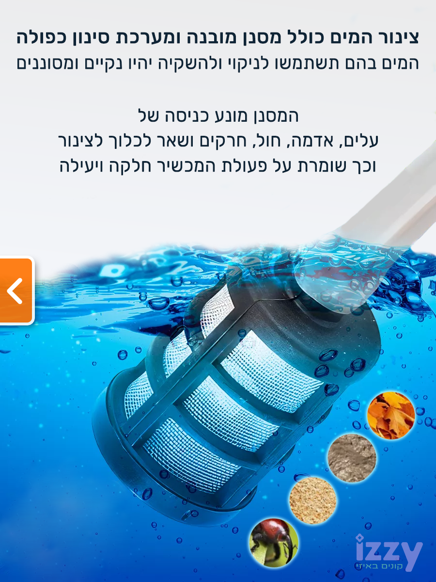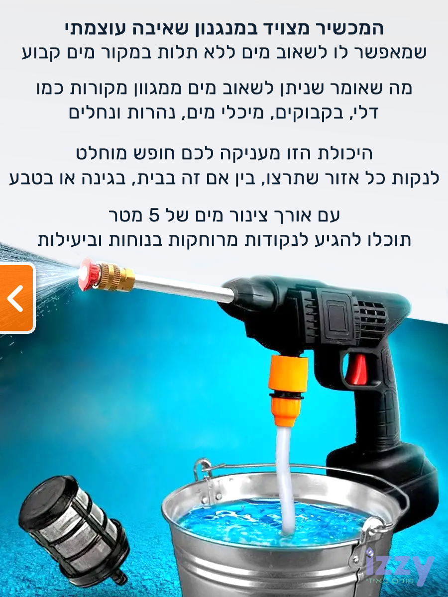 אקדח שטיפה בלחץ בעל צינור באורך 5 מטר עם מסנן כפול למניעת כניסת לכלוך.