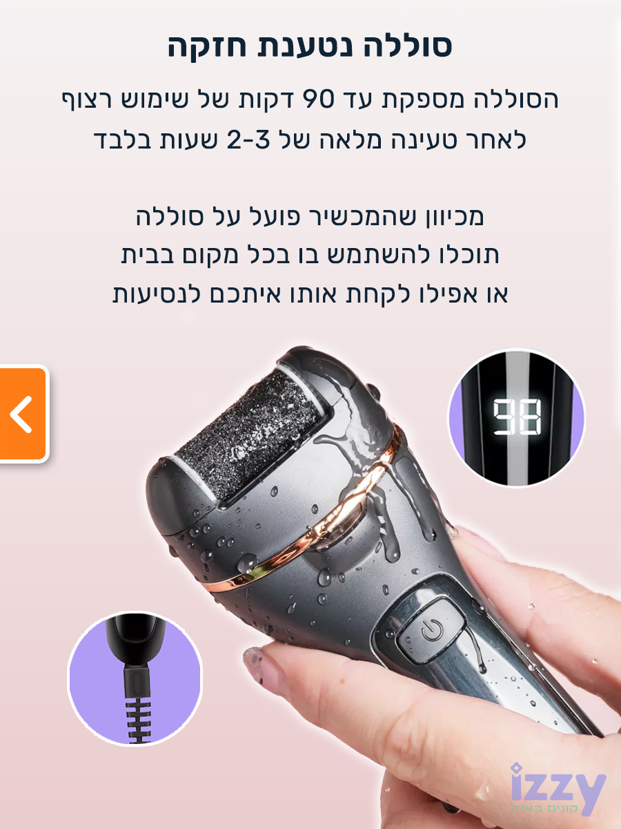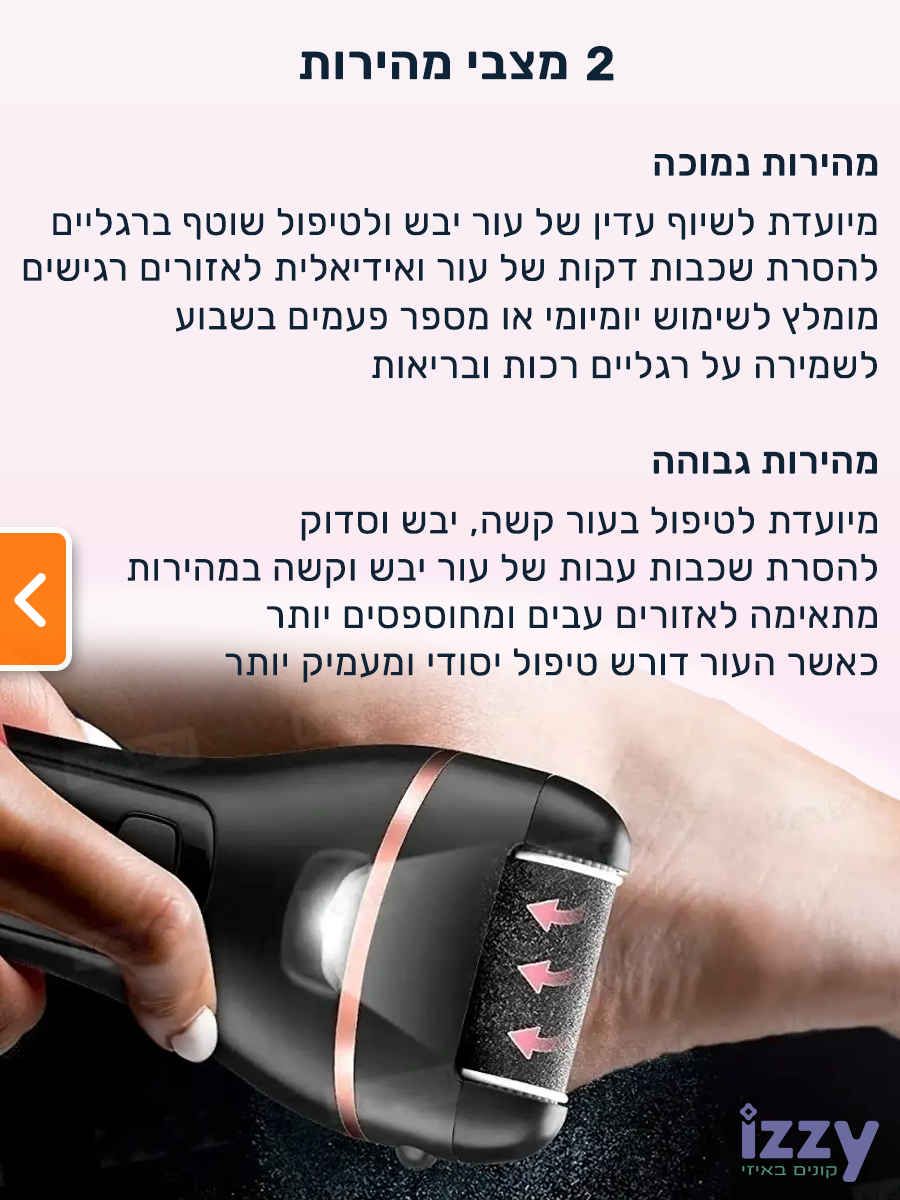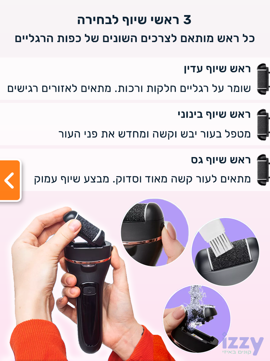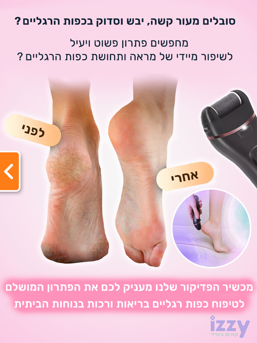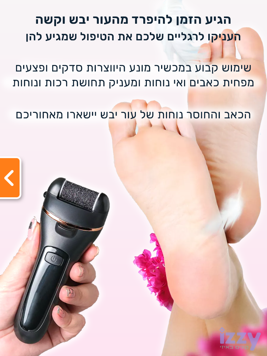 מכשיר פדיקור חשמלי מקצועי לשיוף והסרת עור יבש וקשה מכפות הרגליים