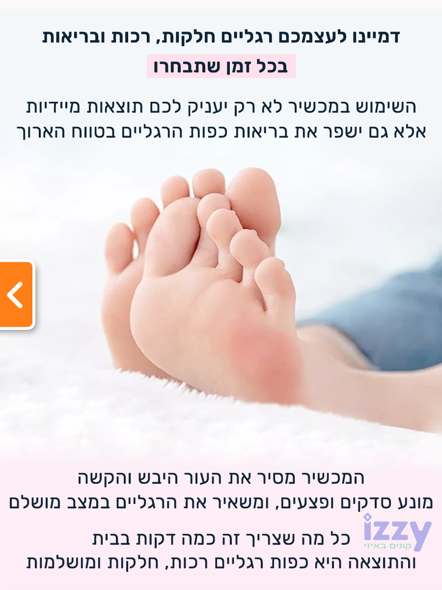 מכשיר פדיקור חשמלי מציע פתרון אולטימטיבי לטיפול בכפות הרגליים בבית. מכשיר פדיקור מקצועי זה מביא את התוצאות של פדיקור מכון היישר לביתך, ובזכות העיצוב המתקדם שלו הוא קל לשימוש ומעניק תוצאות מרשימות.מאפיינים ותכונות עיקריות
