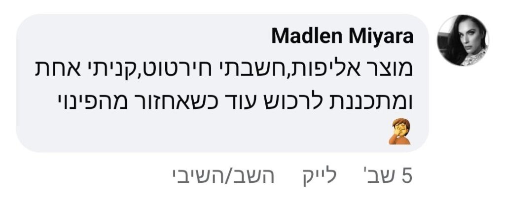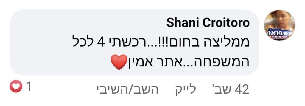 מכיוון שאנו כל כך בטוחים שתאהבו את המוצר, אנו נותנים אחריות של 30 יום להחזר כספי מלא. אם אינכם מרוצים מסיבה כלשהי, צרו איתנו קשר וקבלו החזר.